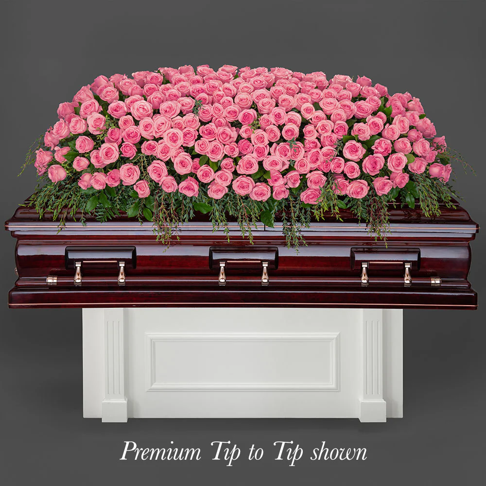 Express your heartfelt love with the elegance of this traditional casket spray, with sweet fragrant roses that touch the heart.